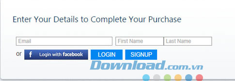 Nhập địa chỉ emai và tên vào mục "Enter Your Details to Complete Your Purchase", sau đó nhấp chuột vào nút COMPLETE CHECKOUT, Mã kích hoạt sẽ được gửi về email.
