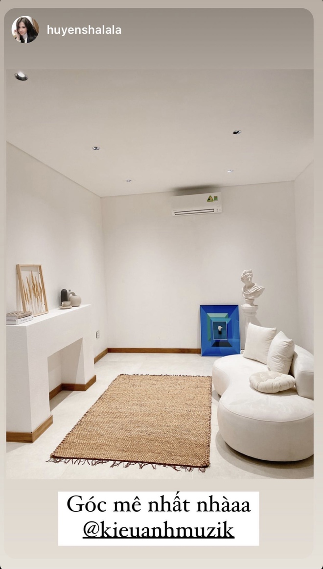 Căn nhà được Kiều Anh chăm chút kĩ càng nên góc nào cũng rất bắt mắt. "Quá trình lên ý tưởng cho đến lúc hoàn thiện mất nửa năm thì mọi người hiểu là kĩ lưỡng chi tiết thế nào rồi. Không có bất cứ một chi tiết, đồ vật nào trong nhà là kiểu tặc lưỡi cho xong. Kĩ càng suy tư đắn đo từ cái nẹp chân tường đổ đi. Thật lòng nói về cái nhà này thì nó là tất tần tật tâm huyết sức lực của 2 vợ chồng mình" - Nàng ca nương chia sẻ trên story Instagram.