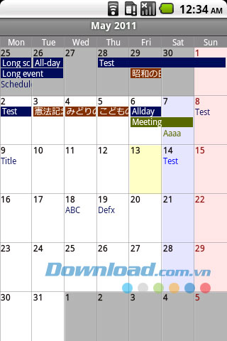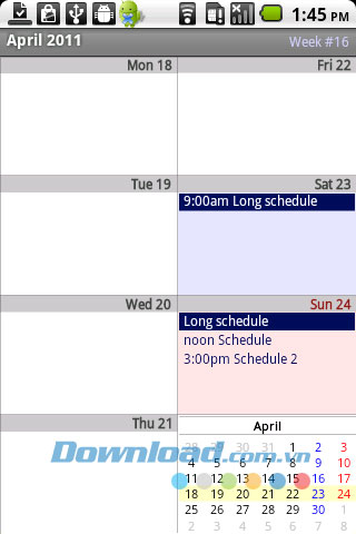 - Hiển thị theo tháng, tuần, ngày và việc phải làm