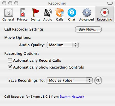 Call Recorder for Skype là ứng dụng ghi âm đàm thoại trên máy Mac, hỗ trợ chuyển đổi âm thanh hay video đàm thoại sang định dạng Quicktime movies hoặc mp3.
