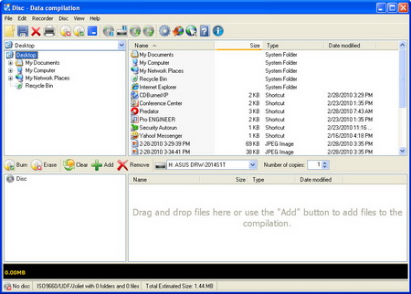Tại đây, bạn hãy chọn những dữ liệu muốn ghi ra đĩa ở cửa sổ phía trên bằng cách sử dụng các thao tác kéo thả và cửa sổ danh sách dữ liệu sẽ ghi phía dưới. Bạn cũng có thể chọn theo từng đường dẫn riêng bằng cách nhấp vào nút Add để chỉ đường dẫn đến dữ liệu muốn ghi. Tiếp tục, bạn hãy chọn ổ đĩa ghi dữ liệu trong danh sách ổ đĩa cùng số lượng CD/DVD sẽ ghi trong mục Number of copies rồi nhấn Burn để bắt đầu việc ghi đĩa.