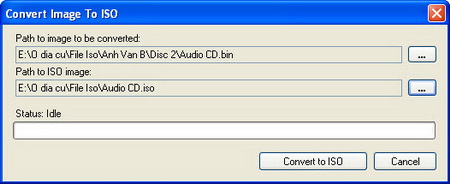 Để làm được điều này, bạn hãy nhấp vào nút Convert to ISO. Tại giao diện hiện ra, bạn chỉ cần chỉ đường dẫn đến file BIN trong máy cũng như file ISO sẽ tạo ra rồi nhấn Convert to ISO là xong.