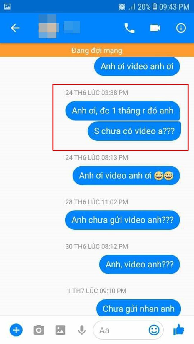 Mà có phải một đứa nhắn hay nhắn 1 tin đâu, mà là nhiều bạn nhắn nhiều tin và anh bơ hết. Bọn em có nợ của anh cái gì không mà sao anh giấu ảnh với video của bọn em, đã vậy còn không có 1 lời giải thích cho bọn em. Cũng chuẩn bị vào đại học cả rồi, ảnh với video nếu anh không muốn đưa thì anh cứ giữ đi ạ. " - nam sinh bức xúc.