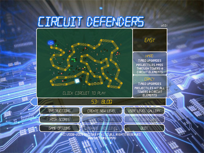 Circuit Defenders - game hành động, chiến đấu quyết liệt, người chơi sẽ thu mình vào thế giới của chính những chiếc máy tính, phải đối mặt với các loại virus nguy hiểm và đa dạng xâm nhập vào thế giới máy tính thông qua những cổng giao tiếp thông thường...