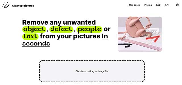 Bạn có thể xóa văn bản và hình ảnh trong vài giây với độ chính xác ấn tượng bằng cách sử dụng cleanup pictures. Đối với các đồ vật hoặc người, chỉ cần tải hình ảnh của bạn vào công cụ, sau đó vẽ lên văn bản hoặc hình mờ mà bạn muốn xóa. Sau một vài giây, bạn sẽ thấy nó biến mất hoàn toàn.