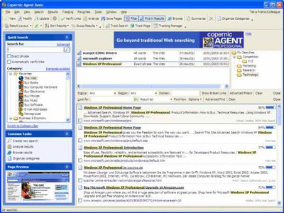 Copernic Agent Basic cho bạn tự động hóa những tìm kiếm thường xuyên, lưu lại kết quả và tổng kết những trang đó để phòng khi cần dùng. Copernic gửi yêu cầu đến nhiều trang Web tìm kiếm cùng một lúc (tuy nhiên hiện không có Google vì vấn đề kỹ thuật) và biên dịch kết quả theo thứ tự. Copernic cũng cho bạn chạy các tìm kiếm đặc biệt như tìm địa chỉ e-mail, tìm lời giới thiệu cuốn sách, tìm tập tin âm thanh, hình ảnh và nhiều thứ khác.