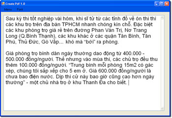Create PDF là ứng dụng nhỏ gọn, đơn giản và miễn phí mà có thể giúp người dùng tạo ra các tập tin PDF cơ bản bằng cách sử dụng một trình soạn thảo. Chương trình rất dễ sử dụng, bạn chỉ cần nhập nội dung của tập tin PDF, chọn kích thước phông chữ và Create PDF sẽ lưu lại với định dạng PDF.