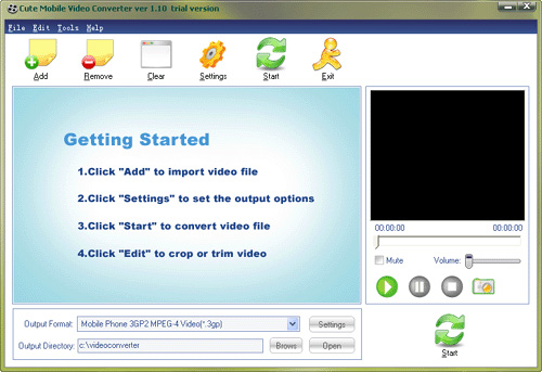Cute Mobile Video Converter là phần mềm chuyển đổi video rất dễ sử dụng. Phần mềm này có thể chuyển đổi rất nhiều định dạng video, bao gồm DivX, XviD, MOV, MPEG-4, MPEG, WMV, H.263, H.264, AVI, WMV, ASF sang định dạng video Mobile và ngược lại. Và bạn cũng có thể trích xuất audio từ video và chuyển đổi giữa các file audio như MP3,M4A,WMA,WAV,AAC,OGG và AC3 nếu bạn muốn. Bên cạnh đó, bạn còn có khả năng chụp ảnh từ video, cắt bất kì phần video nào bằng cách đặt thời gian bắt đầu và kết thúc.