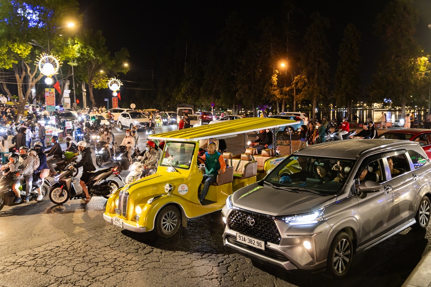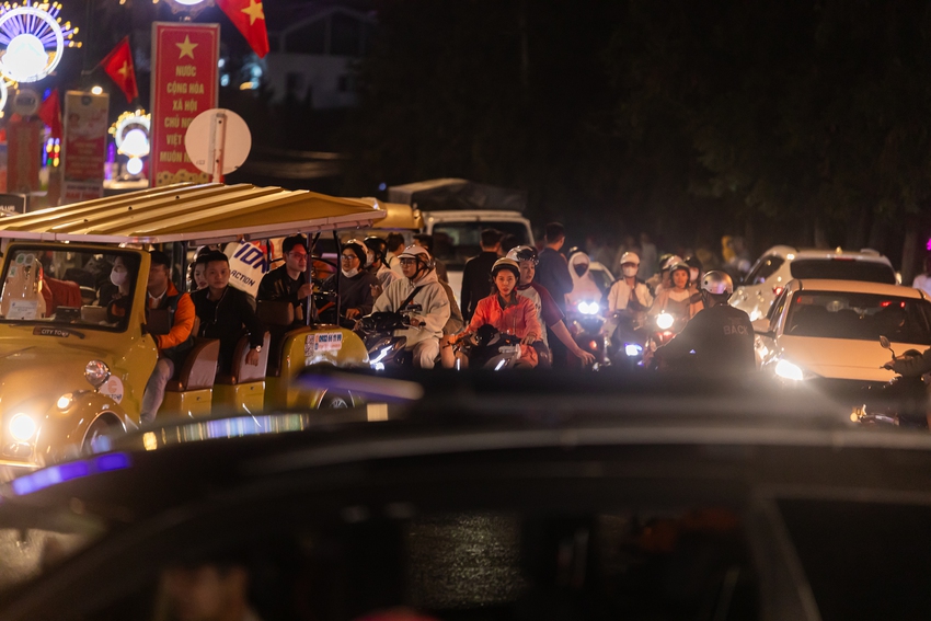 Đến tối, khi thời tiết mát mẻ dao động từ 18 - 20 độ C, du khách bắt đầu đổ xô ra trung tâm TP Đà Lạt vui chơi, một số tuyến đường ùn ứ nhẹ.