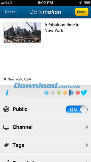 Lựa chọn từ định HD, 16/9 hoặc khung hình vuông, sau đó đăng video lên mạng chia sẻ Dailymotion hoặc các mạng xã hội khác để mọi người cùng thưởng thức.