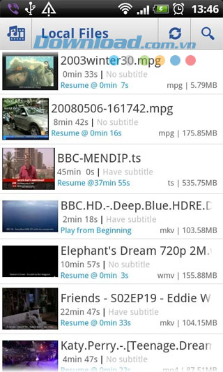 - Tự động nhớ vị trí video/audio chơi mới đây nhất.