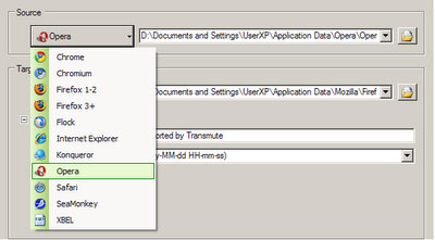 Bước 2: Tại bảng Source các bạn chọn Opera từ danh sách các trình duyệt xổ dọc.