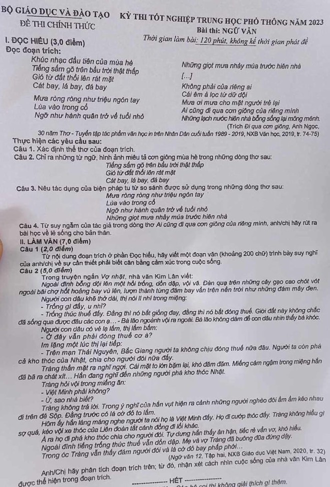 Còn đề Văn chính thức yêu cầu: "Anh/chị hãy phân tích đoạn trích trên, từ đó nhận xét cách nhìn cuộc sống của nhà văn Kim Lân được thể hiện trong đoạn trích".