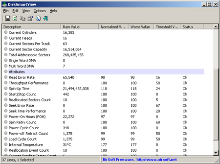 Chi tiết của SMART bao gồm các thông số kỹ thuật chức năng của ổ đĩa cứng. Và bạn có thể dễ dàng xem tình trạng của các chi tiết SMART bằng cách sử dụng tiện ích nhỏ gọn dạng Portable Disk Smart View, thông qua chương trình nó sẽ hiển thị các thông tin SMART trong định dạng tabulated gọn gàng. Bên cạnh các giá trị hiện tại, nó cũng cho thấy tình trạng của ổ cứng trong cột status. Theo TTCN