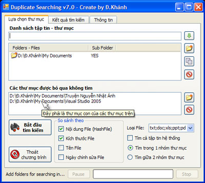- Duplicate Searching có giao diện đồ họa đơn giản, nhỏ gọn nhưng rất dễ dùng.