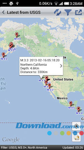 Earthquakes for Android cung cấp thông tin động đất tương đối chính xác và nhanh chóng dựa trên nhiều nguồn dữ liệu tin cậy khác nhau.