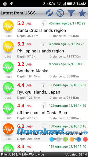 Với ứng dụng miễn phí này, người dùng có thể nhận những thông tin động đất mới nhất ngay lập tức từ mọi địa điểm trên thế giới. Ngoài ra, bạn có thể tìm kiếm thêm về các vụ động đất đã xảy ra trước đây.