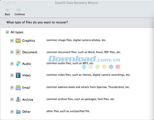 EaseUS Data Recovery Wizard for Mac cho phép bạn dễ dàng và nhanh chóng khôi phục tất cả tập tin bị mất chỉ trong 3 bước. Bạn có thể lấy lại tài liệu, hình ảnh, email, video, nhạc và nhiều hơn nữa từ các ổ cứng và thiết bị lưu trữ dựa trên máy Mac.