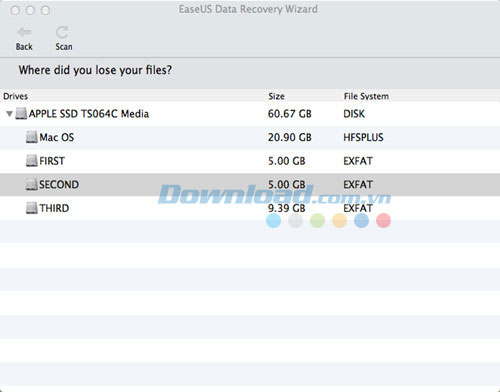 Bạn đánh mất tập tin của mình ở đâu? Hãy lựa chọn một ổ đĩa để quét và sau đó nhấn "Scan" để tìm lại file bị mất.