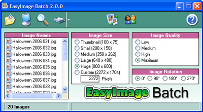 EasyImage Batch là giải pháp đơn giản cho việc thay đổi kích cỡ toàn bộ các bức ảnh số của bạn. Bất kể bạn mới làm quen với máy tính hay là một chuyên viên đầy kinh nghiệm, EasyImage Batch cũng sẽ giúp bạn thay đổi kích thước ảnh nhanh chóng và dễ dàng.