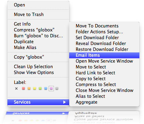 Giới thiệu phiên bản có mục tin dịch vụ của menu context. Phiên bản này sẽ cung cấp truy cập tới chức năng tương tự giống như menu context trong Snow Leopard, nhưng lại là một dịch vụ. Trong Snow Leopard, bạn có thể gọi chức năng này giống như một mục tin dịch vụ có tên "Email Items" trong menu phụ "Services" của Finder hoặc trong menu ứng dụng của Finder.