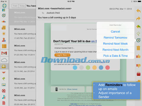Theo dõi Email bằng cách bổ sung trình nhắc được tích hợp với ứng dụng trình nhắc mặc định của nền tảng iOS.