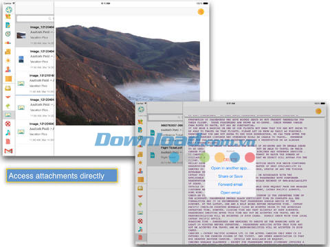 Bạn muốn truy cập riêng các bức ảnh hoặc tệp tin đã nhận hoặc gửi mà không phải mở thư đó? Với Envelope for iOS, các tệp tin đính kèm sẽ được tách tự động vào mục hình ảnh, video, audio và tệp tin (định dạng PDF, văn bản...) và giới thiệu riêng ngoài Email như thể bạn đang duyệt một danh sách tệp tin, ảnh, video hoặc audio riêng lẻ.