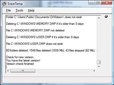 Phần lớn “rác” xuất hiện trong máy tính thường là các tập tin lưu tạm (temporary files) do trình duyệt Web hoặc một chương trình nào đấy tạo ra nhằm tăng tốc xử lý. Để tìm kiếm và dọn sạch những tập tin này, EraseTemp sẽ thực hiện trong nháy mắt.