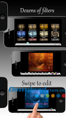 - Chỉnh sửa ảnh dễ dàng với những thao tác ngón tay đơn giản trên màn hình cảm ứng đa chạm của thiết bị iOS.
