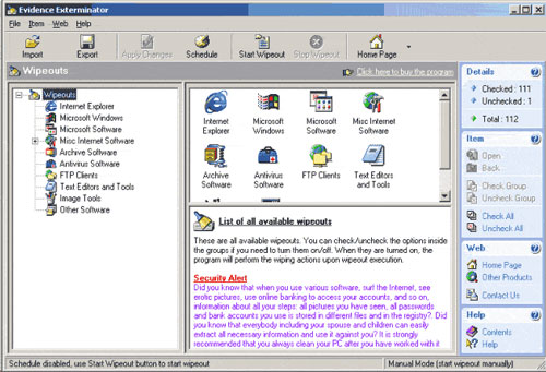 Bạn có biết rằng khi mình sử dụng Windows, mở các folder, tìm kiếm file, sử dụng các phần mềm, lướt web, sử dụng tài khoản trực tuyến để truy cập tài khoản,... thông tin về tất cả các bước của bạn: Tất cả các bức ảnh bạn đã xem, tất cả mật khẩu và tài khoản ngân hàng bạn đã sử dụng đều được lưu lại vào các file và Windows registry. Evidence Exterminator là hệ thống bảo mật phức tạp, giúp đảm bảo quyền riêng tư của bạn bằng cách xóa tất cả thông tin ẩn có liên quan tới các hoạt động của bạn, dựa vào một lịch mà người dùng xác nhận hoặc sau mỗi lần khởi động/tắt máy tính. Phần mềm này không làm hại Windows và không xóa dữ liệu của bạn. Nó chỉ dọn dẹp các mục registry không cần thiết và các file có chứa thông tin quan trọng và có thể làm hại bạn. Hãy nghĩ một chút: Có bao nhiêu người bạn biết rằng họ muốn làm hại mình? Sếp của bạn hoặc đồng nghiệp, và còn bao nhiêu người nữa bạn không biết? Không nên mất việc chỉ vì bạn thích lướt web ở công việc. Cài đặt Evidence Exterminator trên máy tính của mình trước khi quá muộn. Phần mềm này sẽ loại bỏ tất cả các chứng cứ, cũng như dọn dẹp tất cả các file tạm thời còn trên hệ thống của bạn, giúp máy tính chạy nhanh hơn.