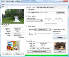 Với EvJO Photo-Image Resizer (EPR), người dùng có thể chuyển đổi nhiều định dạng hình ảnh kỹ thuật số khác nhau, nhiều kích cỡ khác nhau một cách nhanh chóng.