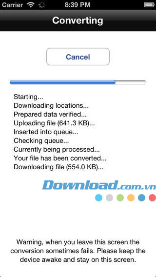 Quy trình chuyển đổi định dạng tệp tin được thực hiện bằng cách tải tệp tin cá nhân lên dịch vụ đám mây bảo mật - đây chính là nơi tệp tin được chuyển đổi. Sau đó, tệp tin sẽ được tải xuống ngược trở lại ứng dụng File Converter Free for iOS. Sau khi tệp tin được tải lên, xử lý và tải xuống, người dùng có thể sử dụng điện thoại như bình thường. Vì vậy, bạn sẽ tiết kiệm được pin thiết bị và quy trình chuyển đổi cũng được hoàn thành nhanh hơn.