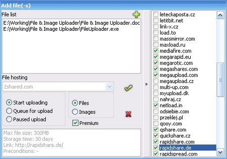 Số lượng File hosting mới thường xuyên được câp nhật, bạn lên nâng cấp các phiên bản File & Image Uploader từ mục Help > Update. Danh sách và thông tin chi tiết của từng hosting được hiển thị từ mục File hoster trên thanh công cụ.