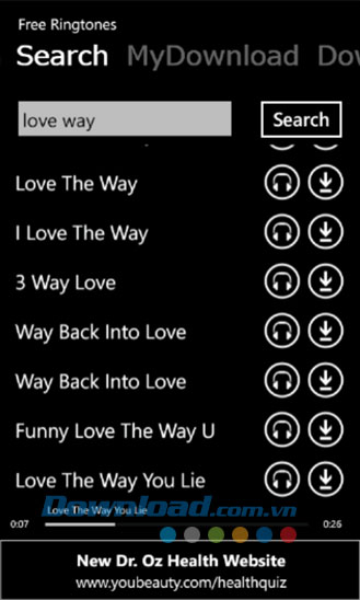 - Tìm nhạc chuông theo đĩa đơn của các nghệ sĩ.