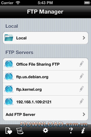 FTPManager là một máy chủ FTP dựng sẵn. Bạn có thể chuyển file giữa máy tính và thiết bị iOS thông qua WiFi hoặc giữa các thiết bị iOS với nhau.