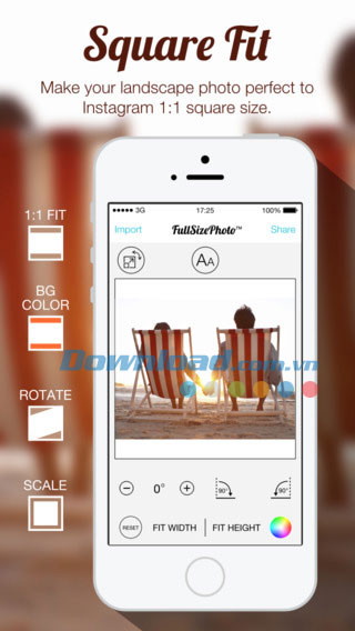 Đối với ảnh vuông bạn có thể tạo đường viền ảnh màu trắng hoặc đổ màu nền bằng nhiều màu khác nhau. Ngoài ra, ứng dụng cũng cho phép xoay hoặc chia tỷ lệ ảnh (phóng to thu nhỏ) nhằm tạo ra shot hình hoàn hảo nhất. Sau đó chia sẻ lên Instagram và nhiều mạng xã hội khác.