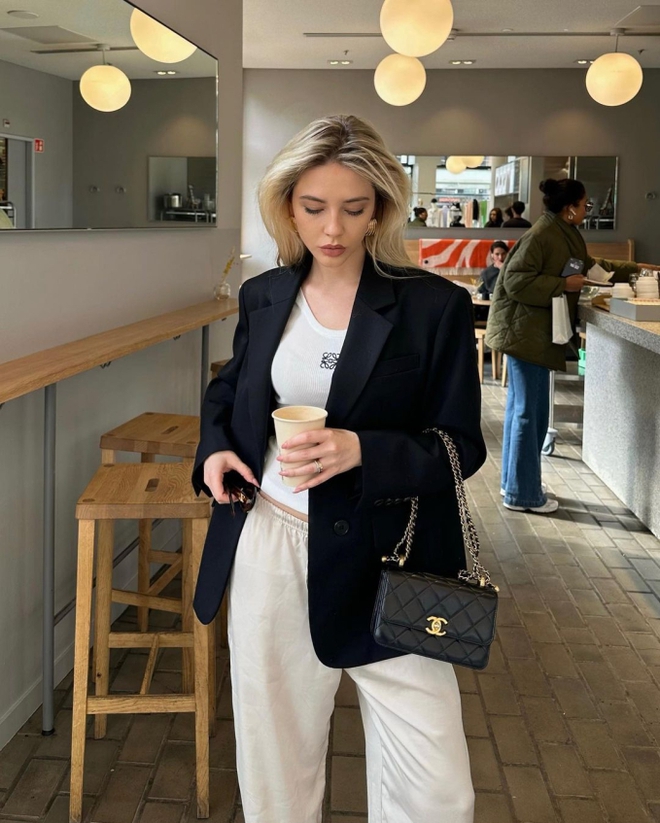 Thu đến, áo blazer được gái Pháp chuộng hơn bao giờ hết. Thay vì lựa chọn những thiết kế ôm sát, chiết eo hay họa tiết cách điệu, những cô nàng sành điệu nơi này dành tình cảm cho kiểu blazer dáng rộng, với những gam màu trung tính. Với mẫu áo này, họ thỏa sức biến tấu và kết hợp với nhiều loại trang phục khác nhau như: Quần jeans, quần ống rộng, chân váy ngắn, quần short hay váy hoa... Hầu hết các sự mix match này đều mang đến cho phụ nữ Pháp nét trẻ trung, phóng khoáng mà vẫn đảm bảo sự thanh lịch, sành điệu.