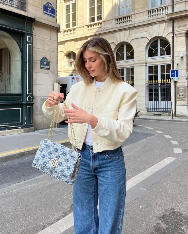 Không chỉ được diện trong mùa thu, quần jeans ống rộng/ống đứng được phụ nữ Pháp diện quanh năm mà không biết chán. Quần jeans ống rộng hay ống đứng đều là món đồ vô cùng "dễ tính" và dễ kết hợp. Ngay cả khi bạn là cô nàng lười phối đồ, thì chỉ cần xỏ quần jeans cùng áo thun, rồi khoác thêm bên ngoài một chiếc blazer hoặc cardigan... là có ngay outfit tuy basic nhưng đảm bảo chẳng bao giờ bị chê xấu.