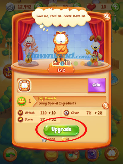 - Sử dụng thẻ bài giành được sau mỗi level chiến thắng để nâng cấp mèo Garfield.