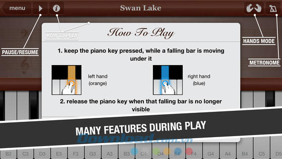 - Cho phép phát hoặc tạm dừng trong khi học chơi đàn.