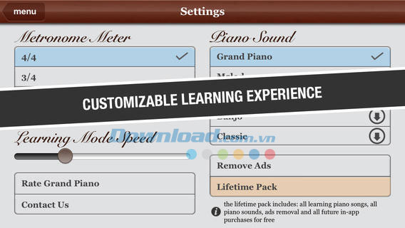 - Tùy chọn mua mang tên Lifetime Pack gồm toàn bộ các bài hát, bản nhạc chơi bằng piano, gỡ bỏ quảng cáo và mọi nội dung được bổ sung trong tương lai.