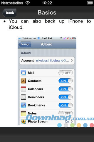Guide for iCloud for iOS là phần mềm giới thiệu iCloud và hướng dẫn sử dụng iCloud cho iPhone/iPad.