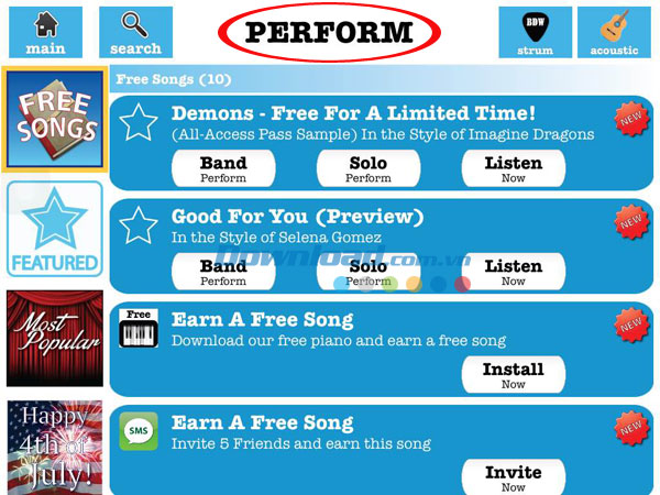 - Luyện chơi ghita với những bản hit đình đám của các nghệ sĩ mới. Ca khúc mới sẽ được bổ sung mỗi tuần.