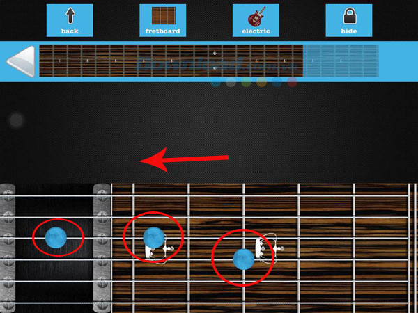 Chơi ghita theo hướng dẫn trực quan trên màn hình