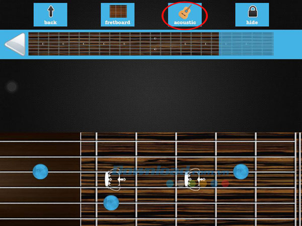 - Hướng dẫn chơi ghita trực quan, dễ hiểu thông qua phần mô phỏng cây đàn thực.
