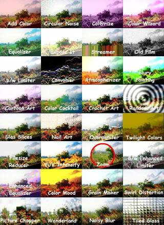 Chúng bao gồm các bộ lọc để thay đổi màu sắc hình ảnh, tạo hiệu ứng nghệ thuật, sản xuất gradient đầy màu sắc hay các mẫu ấn tượng, thêm các hiệu ứng âm thanh đặc biệt cho hình ảnh. Ngoài ra nó cho phép bạn mã hóa và giải mã hình ảnh với 64 bit key, phản chiếu hay vẽ hiệu ứng cũng như các hiệu ứng tự nhiên như sấm sét, lốc xoáy và ánh sáng phân cực.