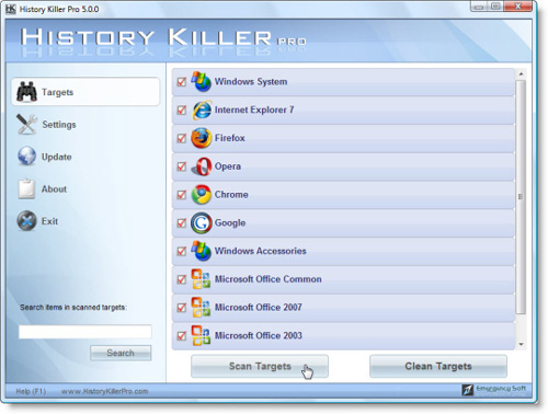 History Killer Pro là phần mềm chuyên nghiệp trong việc giải quyết các vấn đề cá nhân cũng như các mối lo ngại liên quan khác. Phần mềm này sẽ bảo vệ quyền riêng tư trực tuyến và ngoại tuyến của bạn bằng cách loại bỏ những file nguy hiểm có nguy cơ gây hại. Bên cạnh đó, History Killer Pro còn là phần mềm rất dễ sử dụng với một license suốt đời. Giải pháp toàn diện này sẽ dọn dẹp các file tạm thời trong Windows, các file rác MS Office, thùng rác, bản ghi không sử dụng được, các file index.dat, cookies, cache và bản ghi Internet nhằm giữ các thông tin trang web yêu thích của bạn được an toàn. Với tìm kiếm tùy biến, bạn có thể tìm tất cả các mục tin không sử dụng liên quan tới câu hỏi tìm kiếm. Công cụ mạnh mẽ này thậm chí còn loại bỏ được một số entry từ file index.dat. History Killer Pro cung cấp các tính năng tùy biến, cho phép bạn quản lý những gì cần phải dọn dẹp và những gì nên giữ. Hiển thị nội dung trong thùng rác sẽ cho phép bạn xem chính xác địa điểm của folder và file bị xóa và tất cả những tính năng này bạn có thể sử dụng chúng dễ dàng với tác vụ Schedule. Các file và dấu vết sau khi bị xóa bởi History Killer Pro sẽ không bao giờ khôi phục lại được.