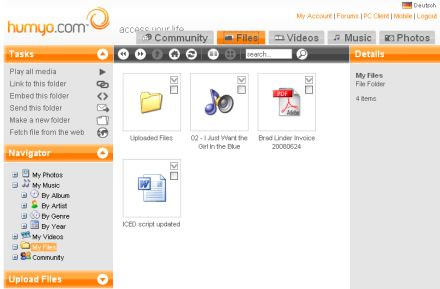 Với 10 GB lưu trữ các tư liệu của riêng mình, tốc độ download tại trang web này chỉ kém hơn Media Fire một chút nhưng có hai tính năng cực kỳ độc đáo: Đầu tiên là khả năng upload bằng thao tác kéo thả file trong cửa sổ Drag & Drop Upload. Trong trường hợp bạn muốn tạo ổ đĩa ảo trong máy tính để tiện upload, hãy cài đặt công cụ Humyo SmartDrive từ địa chỉ http://tinyurl.com/35m95a6. Sau khi cài đặt, hãy mở ổ đĩa Humyo SmartDrive, kéo thả các file muốn upload vào là xong.