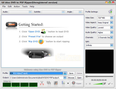 idoo DVD to PSP Ripper là một trình DVD Ripper chuyên nghiệp được thiết kế để rip đĩa DVD mã hóa và tự chế sang các định dạng PSP với tốc độ nhanh. Nó có thể rip DVD thành file video PSP MP4, và trích xuất DVD sang MP3 và M4A.