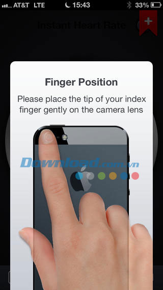 - Đảm bảo rằng ngón tay bạn che phủ hoàn toàn ống kính máy ảnh trên thiết bị. Hãy nhấn nhẹ nhàng, bởi vì việc nhấn quá mạnh sẽ làm giảm dòng máu chảy trên đầu ngón tay và kết quả đo nhịp tim thiếu chính xác. Đảm bảo rằng tay bạn không quá lạnh. Ứng dụng dùng cho mục đích giải trí và tập luyện thông thường.